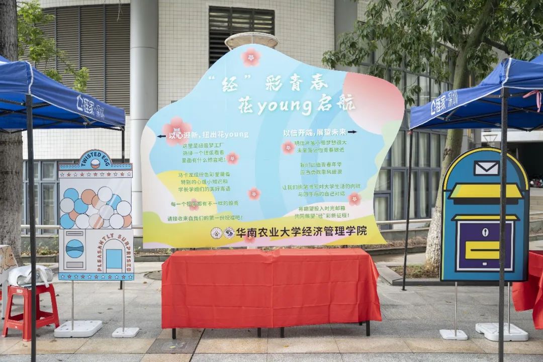 不少学院也在报到处策划了趣味活动。如经济管理学院设置了“扭蛋梦工厂”,在扭蛋机中藏着各种心理小知识和学长学姐的美好寄语,为新生送上“开学第一份祝福”;同时鼓励新生“执笔书写对大学生活的向往”,将写满这份期许的明信片投递到“时光邮筒”,待到四年后可以与现在的自己对话,以此展望新征程。