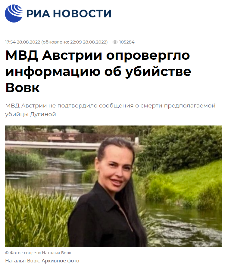 “沃夫克遇刺”的消息发酵后,奥地利内政部新闻处就此事告知俄罗斯新闻通讯社(РИА Новости):“在与我们国家安全和情报局(DSN)的同事协商后,我们可以通知你,奥地利不知道有这样的案件。因此,我们无法确认这一信息的真实性。”由此否认了有关沃夫克谋杀案的信息。