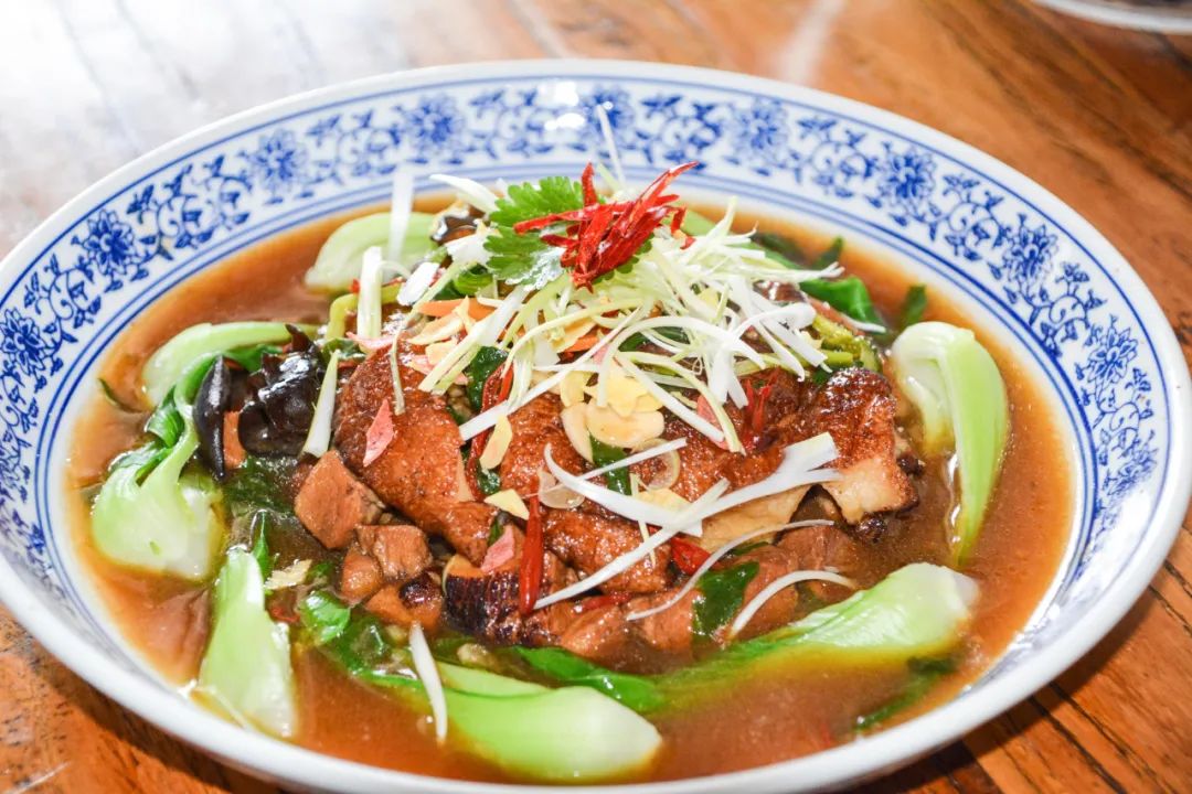 在我们的饮食传统里,无肉不成席。特别在农村的宴席,荤菜越多,人们越会觉得这个席面扎实排面。十三花这么讲究的宴席又怎能落后,它还有个直白的别名——“鸡肘席”,肘子和清蒸鸡是它的灵魂。