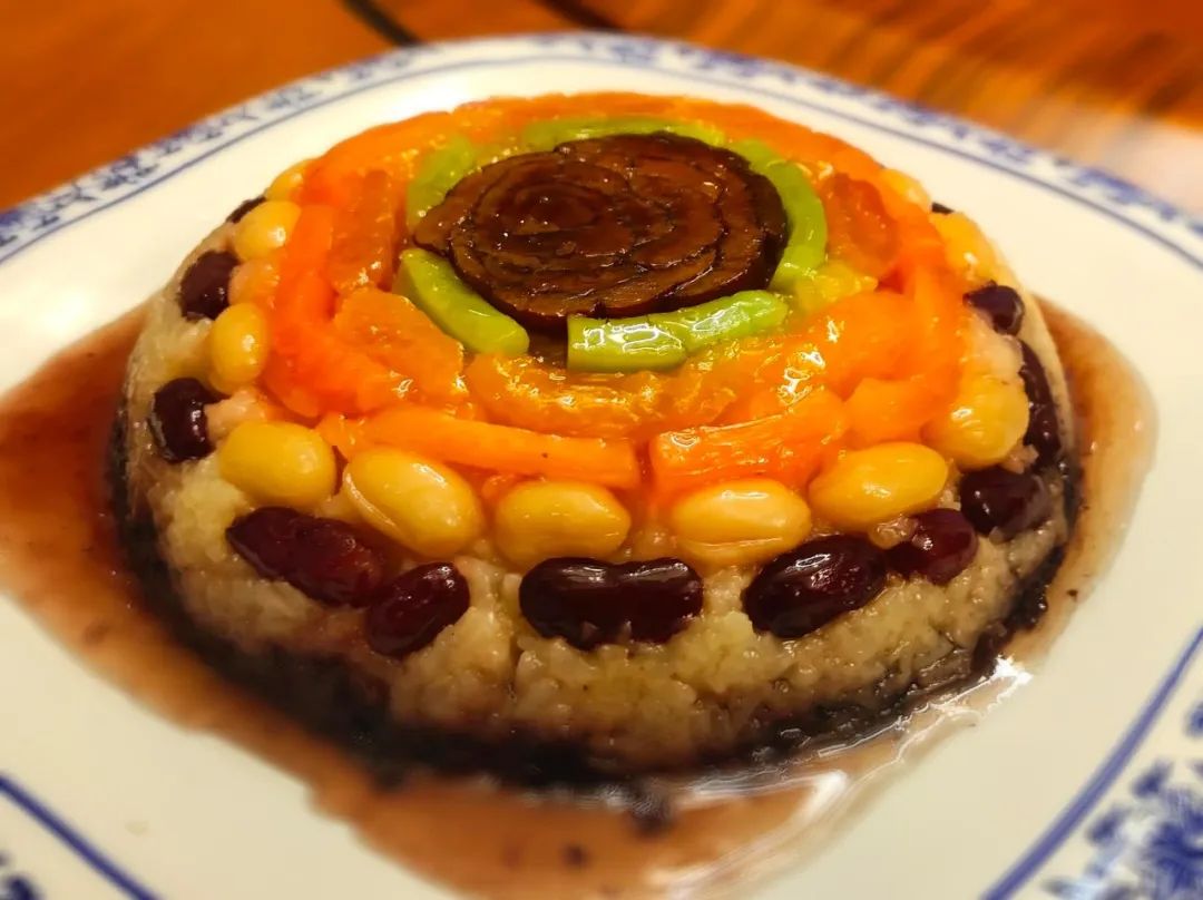 八宝饭历经几千年传承发展,流传至今的“十三花”宴席,演变成了多种做法和吃法。如今,人们在继承传统的基础上融入创新元素,坚持以当地的时令菜蔬为主,就地取材,绿色新鲜。陇中地区四季分明,自然生长的时令蔬菜,磨坊里自制的胡麻油,山间放养的土鸡,地道的荞麦面,这些原始的食物从千年前穿越而来,带着它们独有的气息钻入灶火,成为抚慰人心生生不息的力量。
