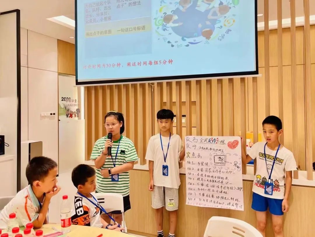 7月23日,在万象汇儿童友好商圈,一场以“反电诈——守护我家的钱袋子”的情景剧正倾情上演,剧中演员是来自鄞州区中河街道的12名儿童议事员。在正式开启情景剧之前,他们都以“采访员”的身份到鄞州区中河街道派出所学习有关反电诈的调研,并对警员们进行采访。活动中,12名儿童议事员提出了15个金点子,制作成宣传海报。据了解,中河街道妇联注重以多样化的方式鼓励儿童参与社会议题讨论,多渠道带动更多儿童发声,让儿童参与社区事务与社区发展,为社区居民提供服务。