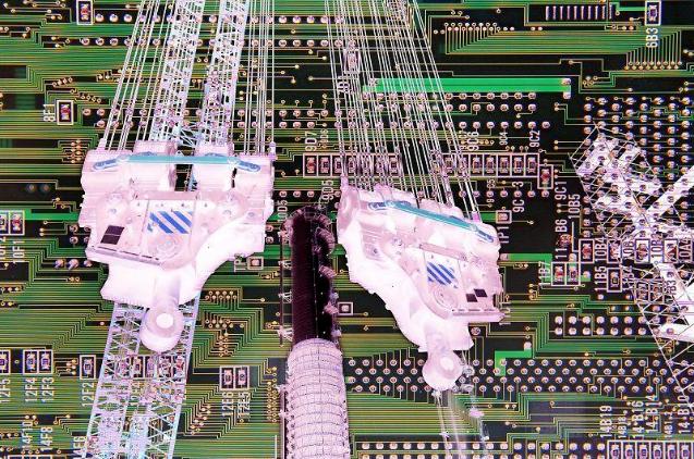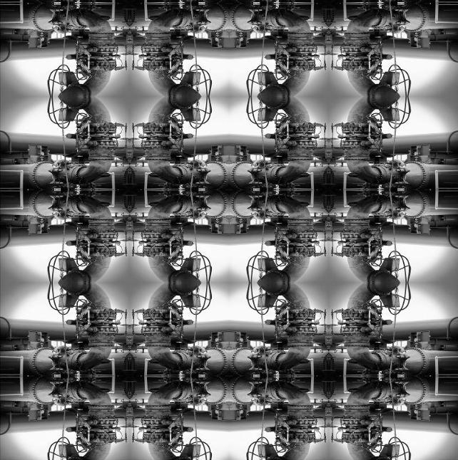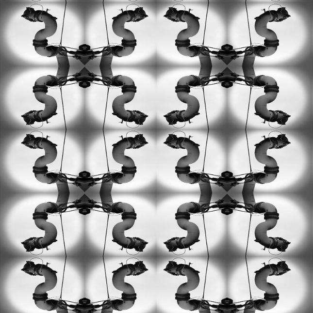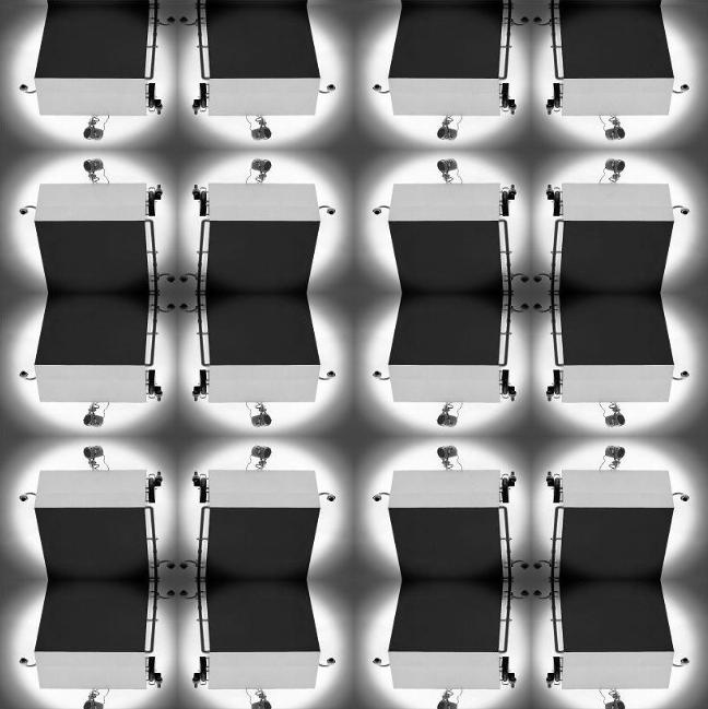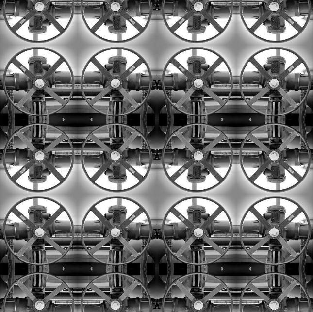 作品《重复.构建》 ,通过重构的方式,将不以为奇的工业元素加以形式化的表达,秩序化、整齐化,在上下左右重复中,画面的单一性消失了,形成了和谐富于节奏感的视觉效果。