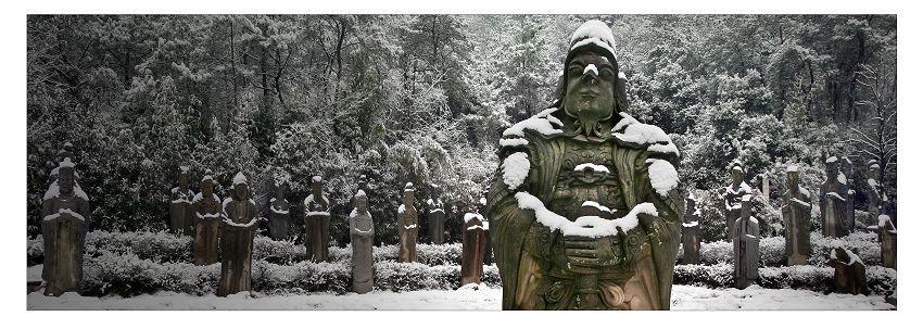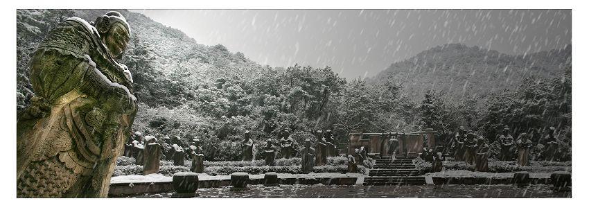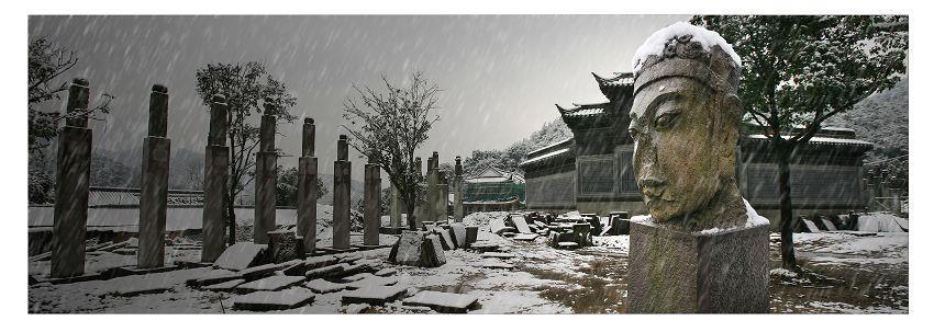 作品《守候》系列无疑在这三个方面,表现出其沧桑的厚重,就如石刻本身一样的历史感,作了一次实践和尝试。“北有秦陵兵马俑,南有钱湖石刻群”浙江宁波钱湖南宋石刻群,在历史的长河中静静的悬浮了800多年。春夏秋冬,日月交替,它们都用自己安静、祥和的姿态伫立着。