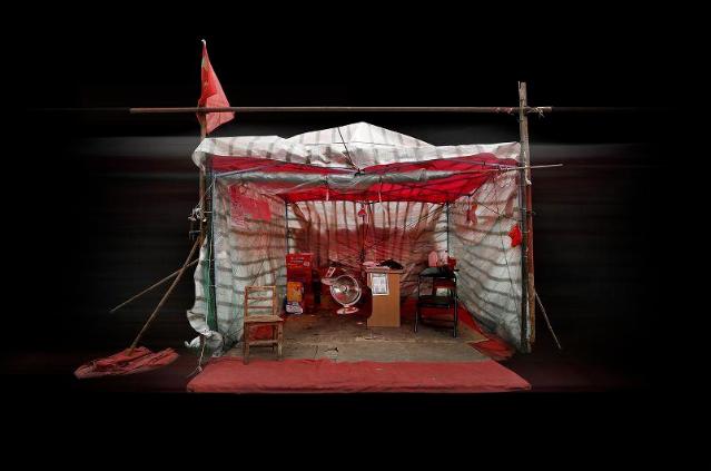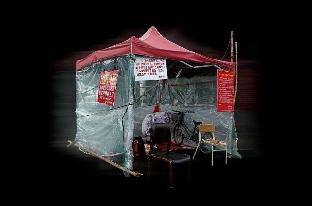 卡点2020 @ 2020系列作品《卡点.2020》创作于2020年。这是一组用纪实拍摄,采用艺术形式呈现来---定格疫情下志愿者们曾经工作过的“战场”。选择帐篷内外---无人拍摄,旨在“见物不见人,无人胜有人”的境界。椅桌板凳、口号标语、测温仪、二维码、红袖章,所有的场景都是原始状态。