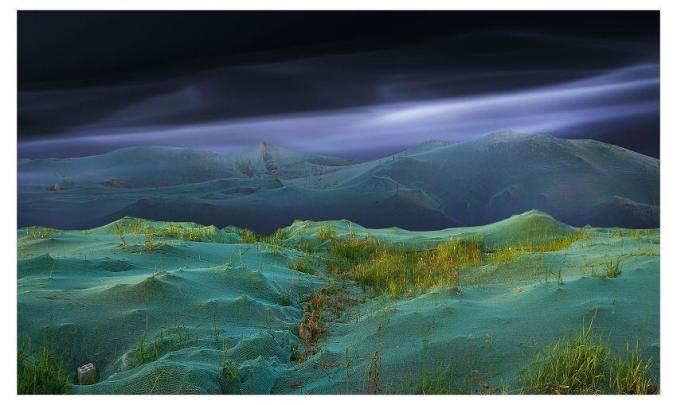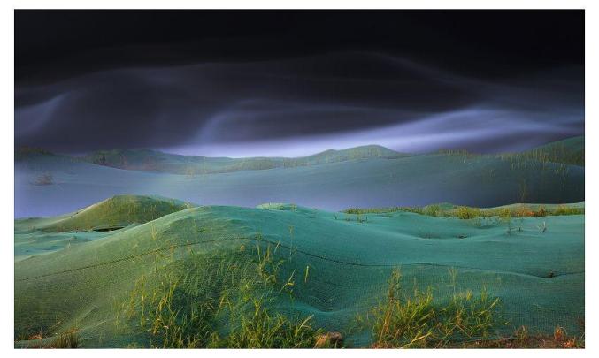 新风景地带 @ 2017我认为,摄影作品必须要有所创新才具有艺术生命力。我对“摄影艺术的创新”的理解是:“独具匠心于规律,别出心裁于情理”。2017年创作的《新风景地带》系列作品通过对平淡无奇建筑工地“绿色环保网”的拍摄与后期重组,艺术化地呈现出绿水青山新风景。