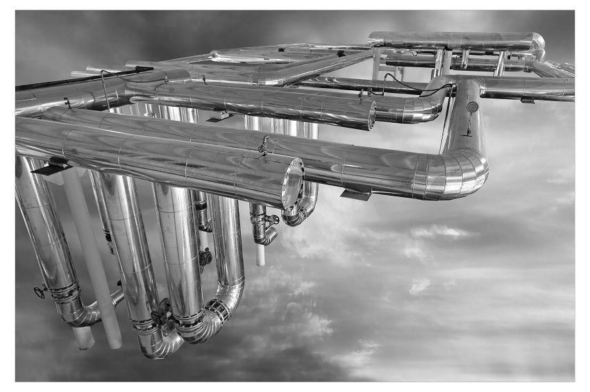 云端 @ 2021《云端》系列作品创作于2021年,作品有点浪漫,作品诗意盎然。这是一组用不锈钢管道设施作为意象元素,被重新安排天地世界,蜿蜒曲折、气势如虹。相对其他艺术语言,摄影有着独到的表现,它的细腻和质感,会产生身临其境的真实和震撼。同时在画面表现的不确定和非真实状态里,流露出的是摄影师内心的景观,是借助于客观被拍摄的物体---而产生的联想,并且带有一些理性状态的制造。