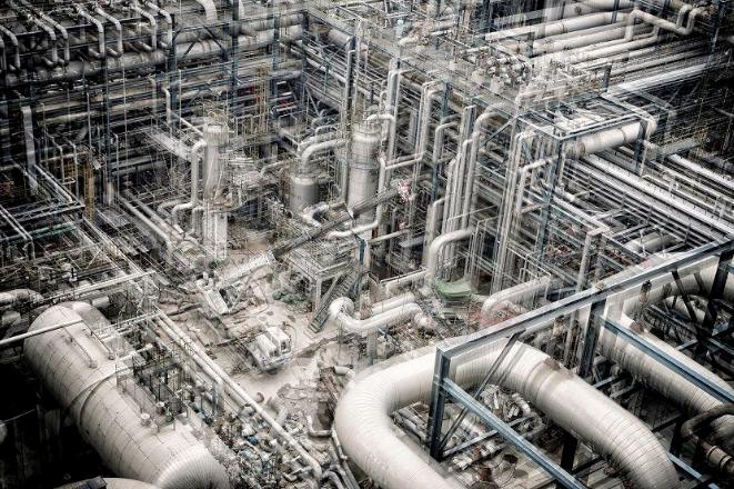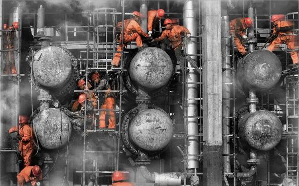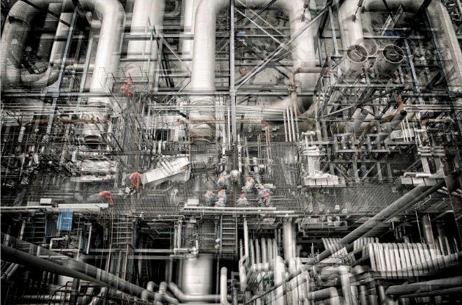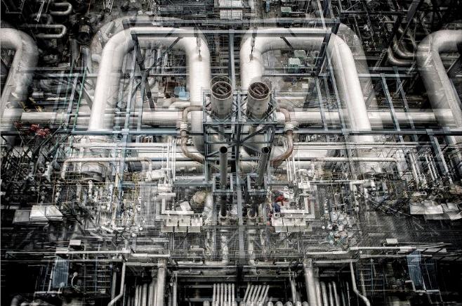 大围战 @ 2018组照《大围战 》是运用多次曝光技术完成的工业题材类作品。特点是多曝和叠加。把现代化炼油企业大修场面艺术化的呈现出来。所以,林立的管线、交叉纵横,配合低饱和度的画面,实现了许多独特的、具有视觉冲击力的艺术效果。