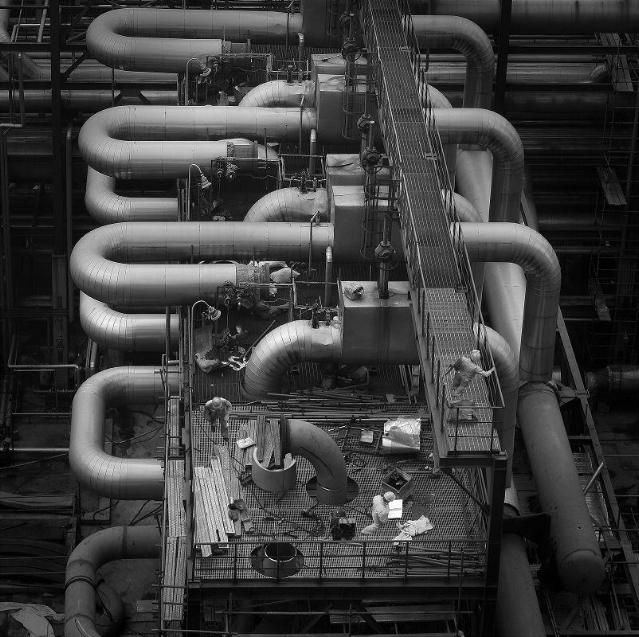 如果还是用六十年代、七十年代工业摄影方法去“瞬间记录”,没有新意,也制约了创作空间。纵观许多优秀的作品,其实在技术上是简单的,但它透过形式构图、光线运用、影调控制、系列作品影像的编排,使作品内涵得到了提升。这些优秀作品不仅能够展示工业表象,更能揭示深刻的意象。