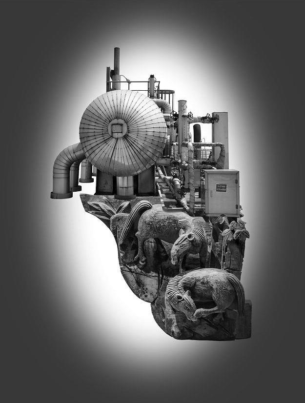 作品试图冲破围困着-----我们周围-----浩大的喧嚣,那是恣意、轻盈、寂静和本能。这里的摄影是造境而不是记录,这一切跃然于我的心,对我来说体验是真实的。我唯一需要的就是将它视觉化。我在石油石化企业拍摄的素材,按照自己的想法进行二次创作。并使用 Photoshop软件去按照真实的透视、环境影调、亮度关系、细节层次,然后再统一处理。我们可以跨越单纯的记录式表现,并努力使观者凭借内心的沉淀和经验,去体验画面----营造的气场,进入和扩展画面表述的内涵,体会影像艺术中的无限空间与现代意识。