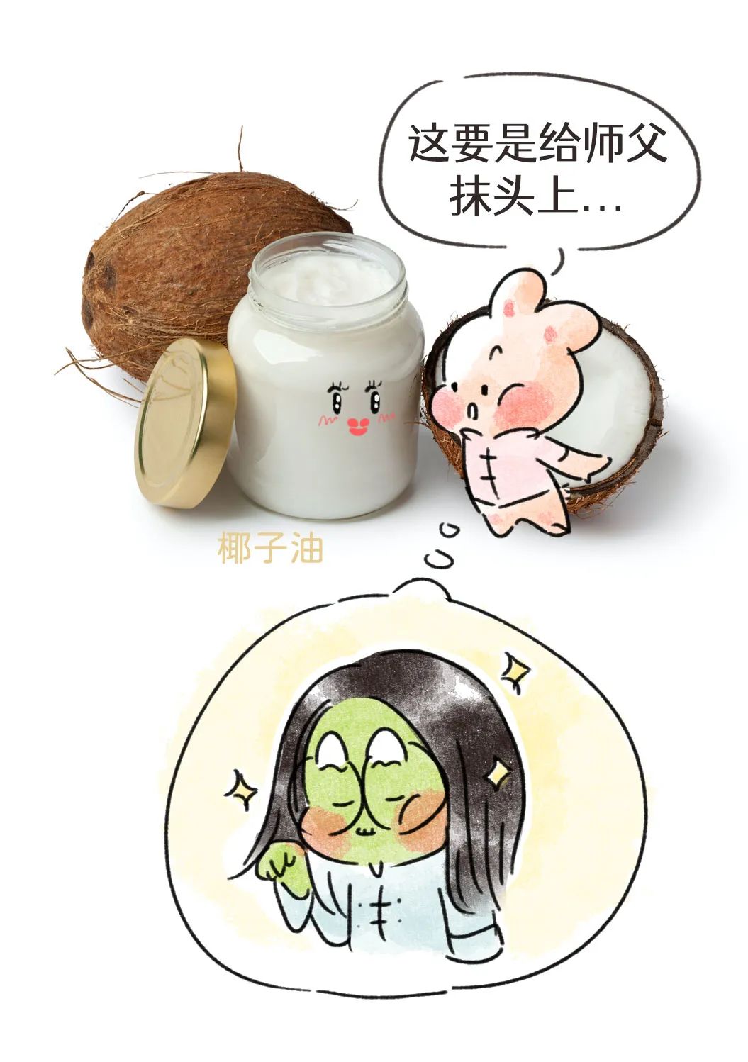 在日常生活中,椰子油可以外用涂抹来润肤,能够溶解毛孔中的油污、汗液、垃圾,还能作为护发素来护理头发。