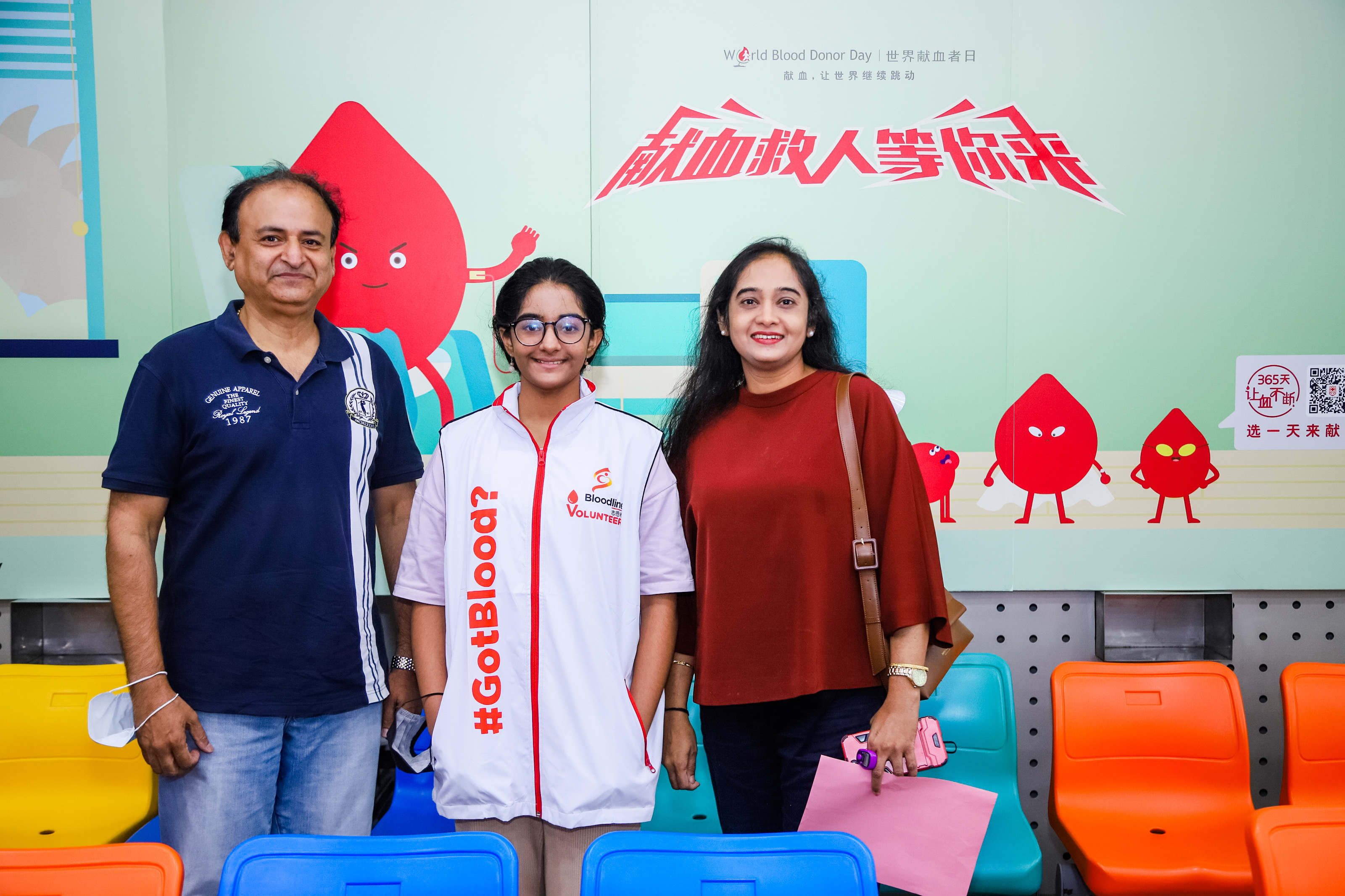 爸爸Tushar Bhanushali在上海有过多次献血经历,他的妻子Shilpa Bhanushali当日生日,用献血这种特殊方式为自己庆生。而他们的女儿Tanvi Bhanushali今年14岁,会说一口的流利的英语和中文,当日在现场任志愿者。