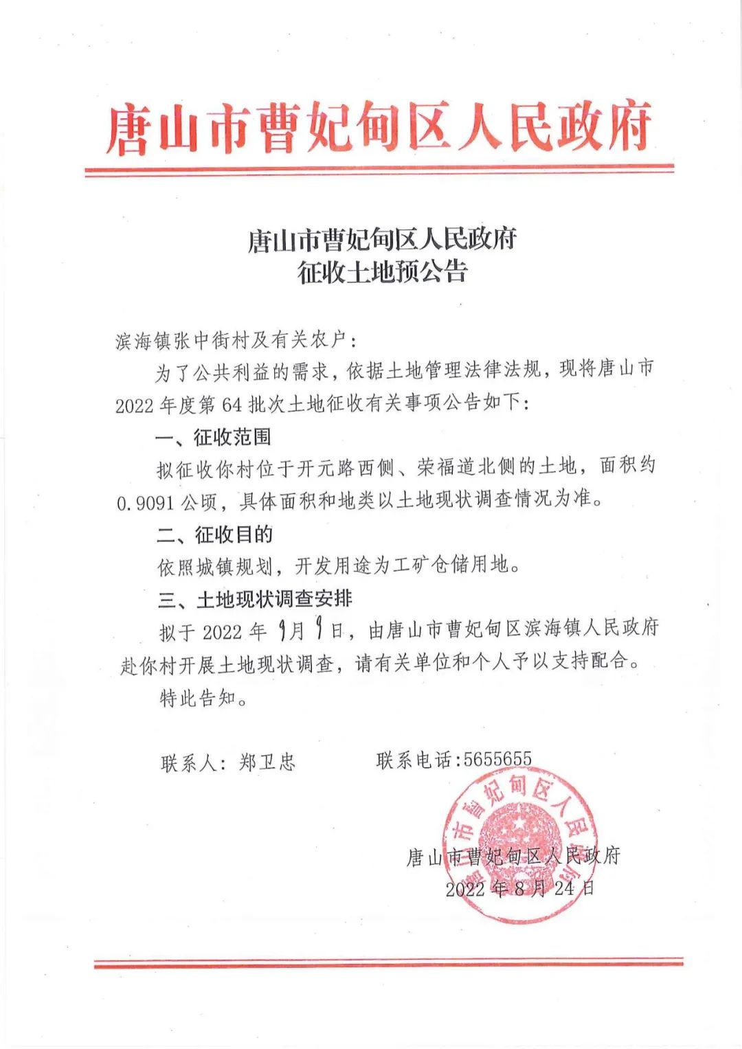 一则征收土地预公告