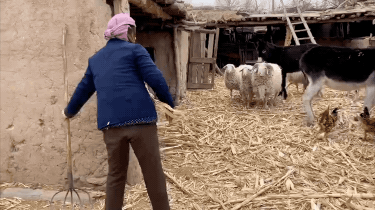 ▲除了下地,海清还要喂牲口,给羊和驴接生