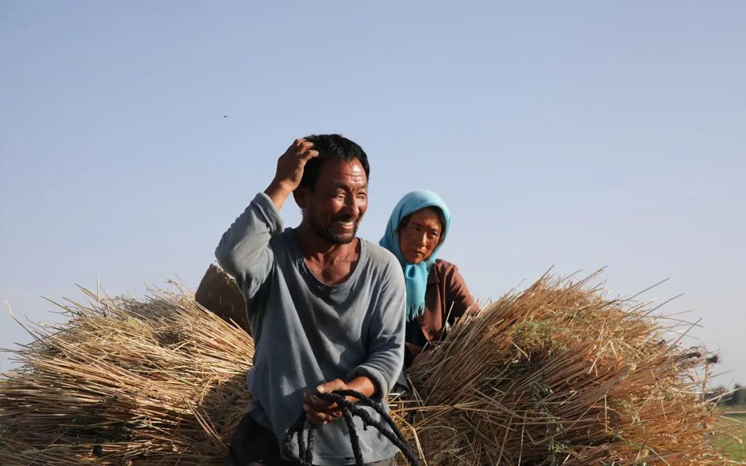 在电影里,姨夫演的有铁要耕种几亩地。在春天播种麦粒,犁地施肥,在夏末收割,一捆捆堆得小山似的,晾晒脱粒……种植的每一步,李睿珺都拍了。
