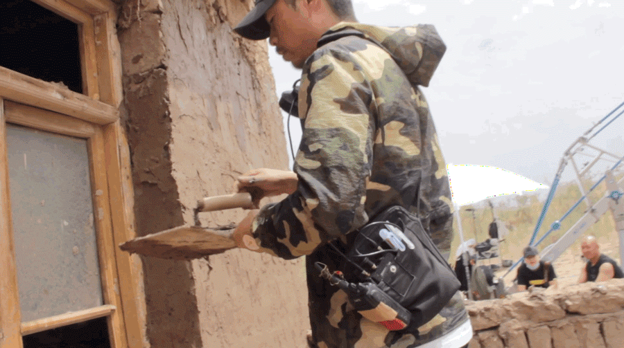 为了拍两人造房子的戏,李睿珺没去找现成的房子。他从零开始,花了3个月,盖出一个房子。河西走廊一带,祖祖辈辈都造生土建筑。他画了一个图纸,每天去拉土和泥,把泥巴搓成土砖晾干,码起来。边拍边修,边修边拍。