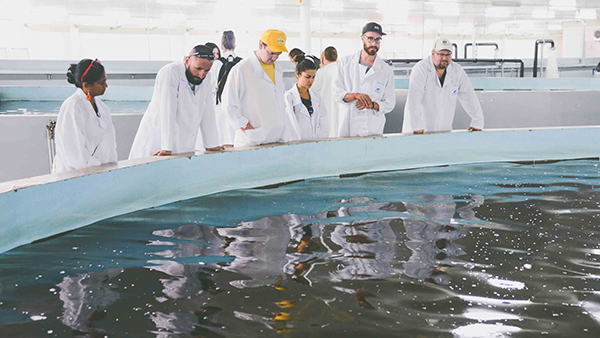 农场有一台巨大的高科技设备,每年能生产5吨鱼子酱,每盎司售价超过40美元。我们看着海怪大小的鲟鱼盘旋在一个宽达100英尺的人造池塘里,池塘有着严格设定的光照和温度系统。此行的尾声以一顿近乎奢侈的美餐结束,我们啜饮着香槟,吃着涂满了鱼子酱的苏大饼干,假装自己正在俄罗斯富豪举办的野餐会上。