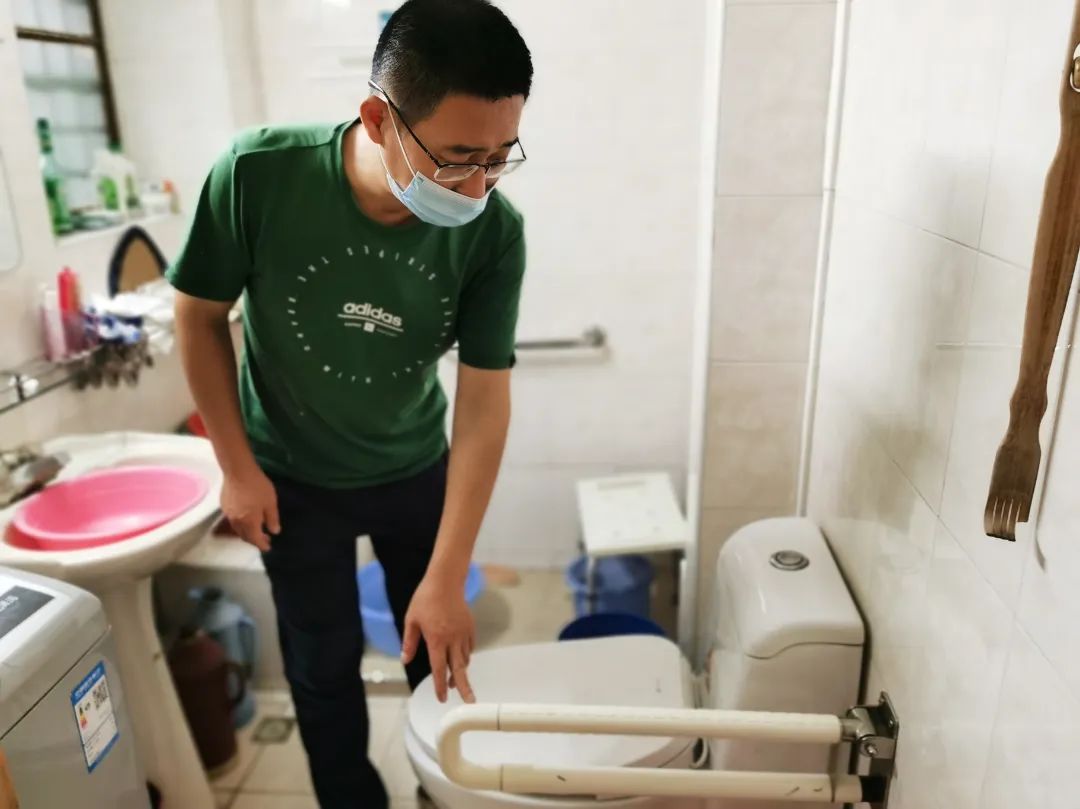 “我站起来可以扶一下折叠扶手,平常它也不会挡着走路,新安装的闪光门铃、智能马桶盖都很好用。现在我上厕所也不怕摔跤了,一个人住也一样放心。”说起家中的新变化,平吉二村小区85岁老人张涵一满面笑容。