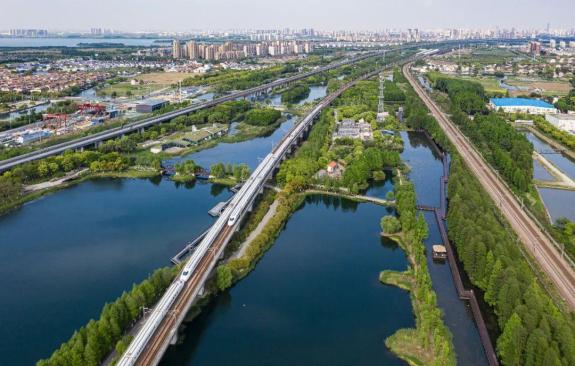 高铁与普铁“双轮”驱动,客车加密开行。目前,长三角铁路满图条件下每天开行客车超过1200对,规模效应凸显。高铁列车在沪宁、沪杭沿线城市间穿梭。视野拉宽、镜头放大,秀美的“生态走廊”绿意盎然。高楼林立、人流不息,一家家企业在高铁周边汇聚,一个个产业园在高铁周边诞生。
