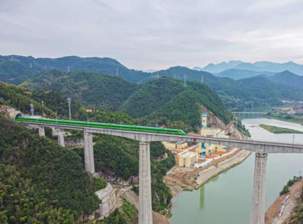 坐在杭黄高铁动车组列车上,窗外处处青山绿水,一幅现代版的《富春山居图》徐徐展开。