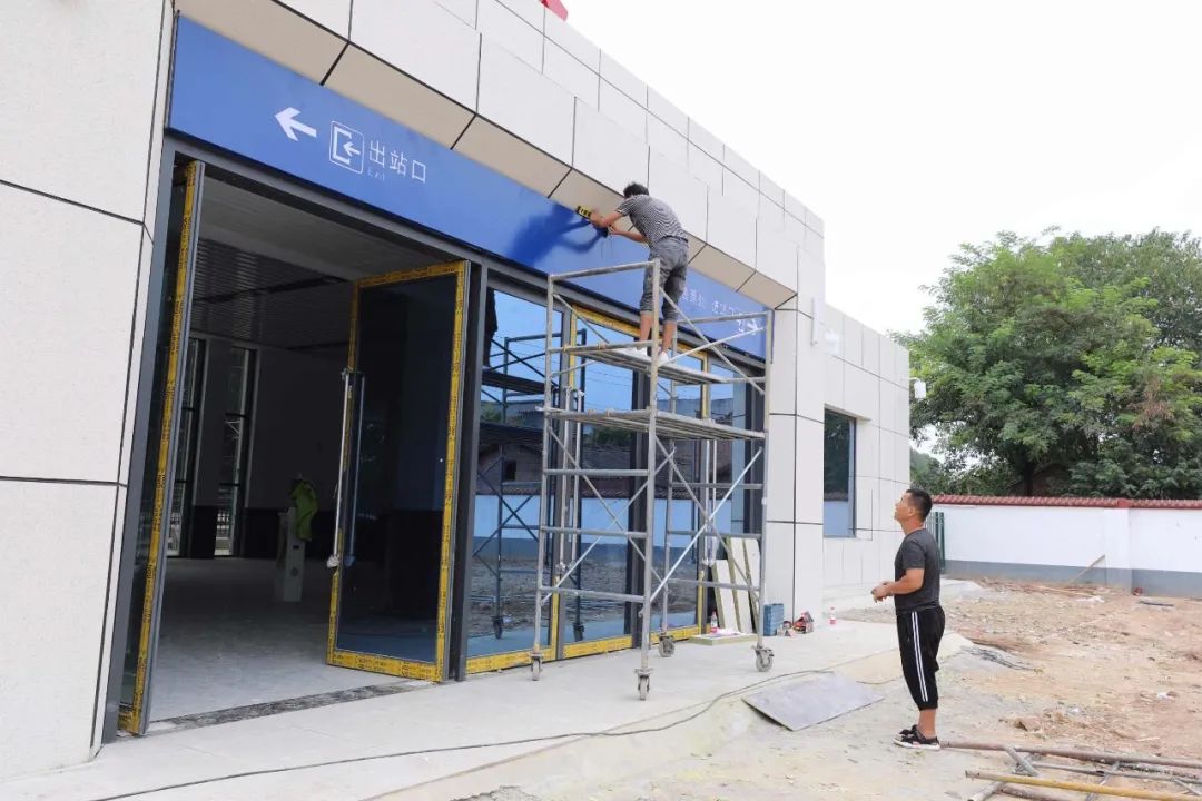 一期工程自今年6月初开工建设,计划9月上旬投入使用。目前,车站候车室、站台、站台灯、客运设备、安全标识、洗手间内饮水机、洗手池等基础设施已全部安装到位,正在进行紧张的收尾工作。