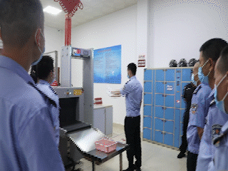 由副大队长周琳进行安检授课:一是安检仪器的理论知识,二是金属探测门及手持金属探测器的原理和检查程序;三是人身十大重点部位检查;四是识别X射线的基础知识和常见违禁物介绍;五是人身检查实际操作;六是如何了解各种炸药,枪支弹药,以及如何说服一些不配合检查的当事人。动手实操