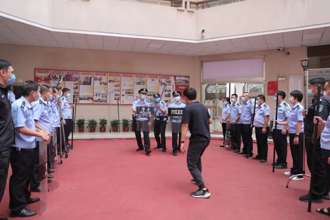 为提升司法警察及安保人员应急处突和协同配合能力,法警大队组织开展突发事件应急演练,由教练员陈伟志向安保人员讲解警棍、防爆盾、辣椒水等警械使用方法。