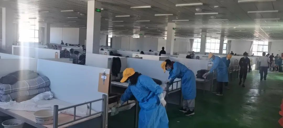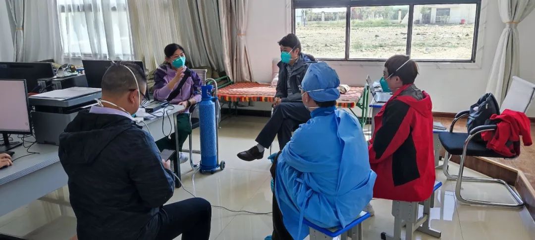 由于患者大多为藏族同胞,语言沟通存在障碍,使援藏抗疫工作更为紧张而繁重。幸运的是,有藏族志愿者们帮助大家一起参与翻译、病情询问、发放物资等工作,队员们和志愿者们一直在尽最大努力与病员交流、沟通、安抚,并积极做好心理疏导,让患者更好地配合治疗。