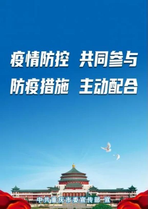 可查看重庆疾控微信公众号广大市民要及时关注各地疫情防控部门发布的管控通告、健康提示、病例活动轨迹等,配合做好相应的防控措施。如收到协查通知或发现与通报的病例有时空交集,立即主动通过渝康码、“社区报告二维码”等途径向所在地社区(村)、单位报告。进入公共场所配合做好检测体温,主动出示“渝康码”“行程码”,扫描“场所码”。