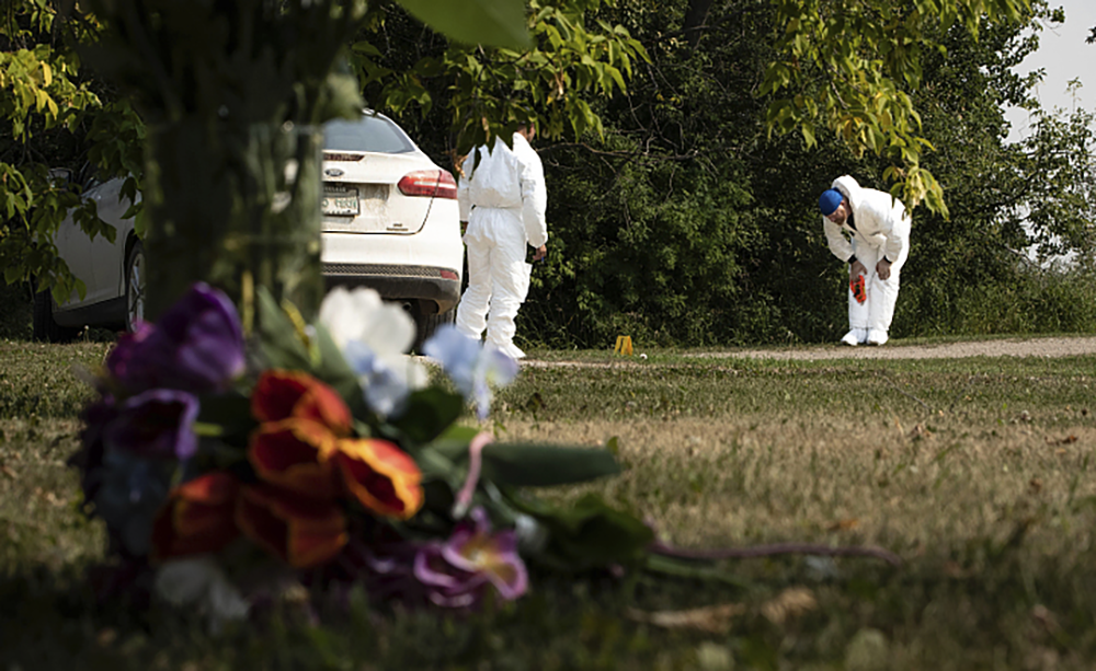 当地时间2022年9月5日,加拿大萨斯喀彻温省,调查人员在检查犯罪现场。人民视觉 图