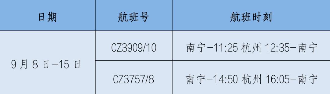 9月8日起,往返南宁-杭州的CZ3909/10和CZ3757/8航班,迁至T4航站楼运行,乘坐这些航班的旅客,将率先体验T4航站楼。