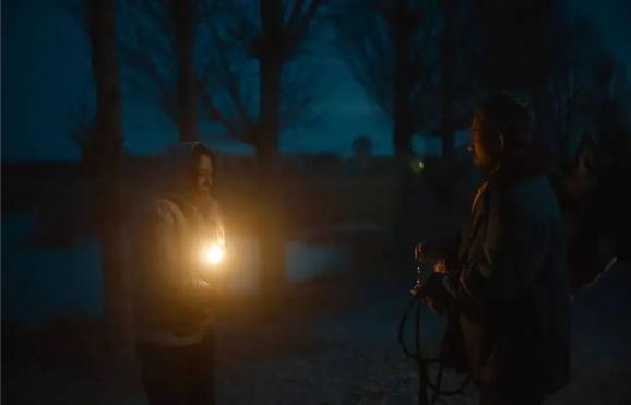 夫妻俩随后搬进另外的闲置房,一起在灯光下查看孵化中的鸡蛋,一起到麦地里耕种、除草。两人一边干活,一边闲闲说话,聊着庄稼,也感慨命运。