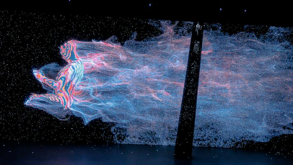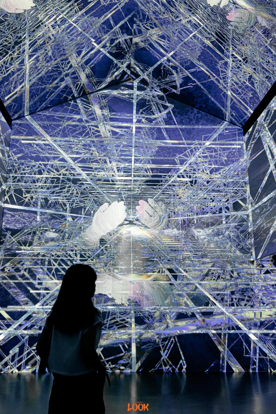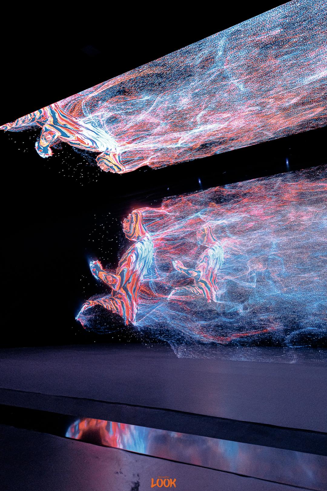 作为大圣最初始的状态,元素态空间天地初开,从无到有,出现了一个混沌的宇宙。宇宙里不断形成的点、线、面,跟随着观众的参观动线,从四面八方汇聚起来,再涌向更远处。