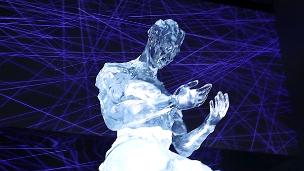 高维态是最后一个光影空间,这里有一樽大圣的雕塑,以及四周无限变换的投影影像。