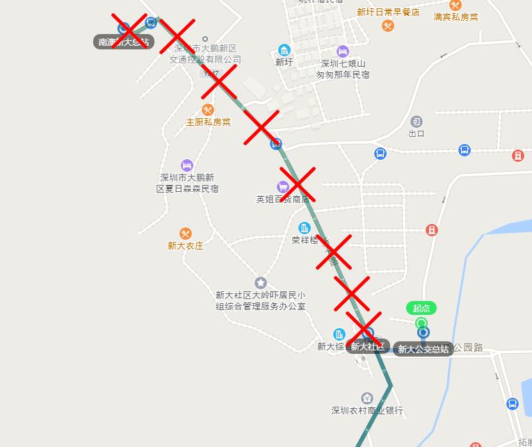 E11线调整路段示意图双方向取消“新大社区”1对公交停靠站。