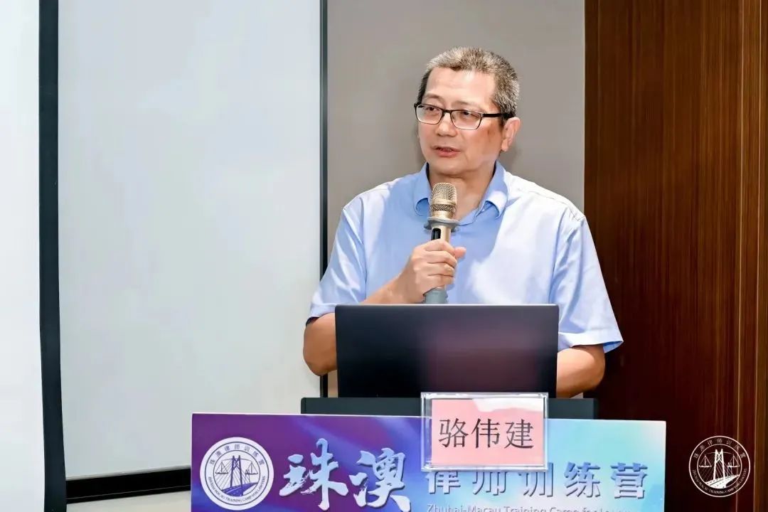 (“珠澳律师训练营”授旗仪式)在第一天的课程中,广东省律师协会会员处分复查工作委员会副主任,珠海市律师协会副会长沈继光向学员们讲授了《律师职业道德与执业纪律》。广东财经大学法学院院长邓世豹教授给学员们带来《数字经济与法律保障》专题讲座。澳门大学法学院宪法与基本法研究中心主任骆伟建教授向学员们讲解《“一国两制”与基本法体系》,引发学员们深入思考。