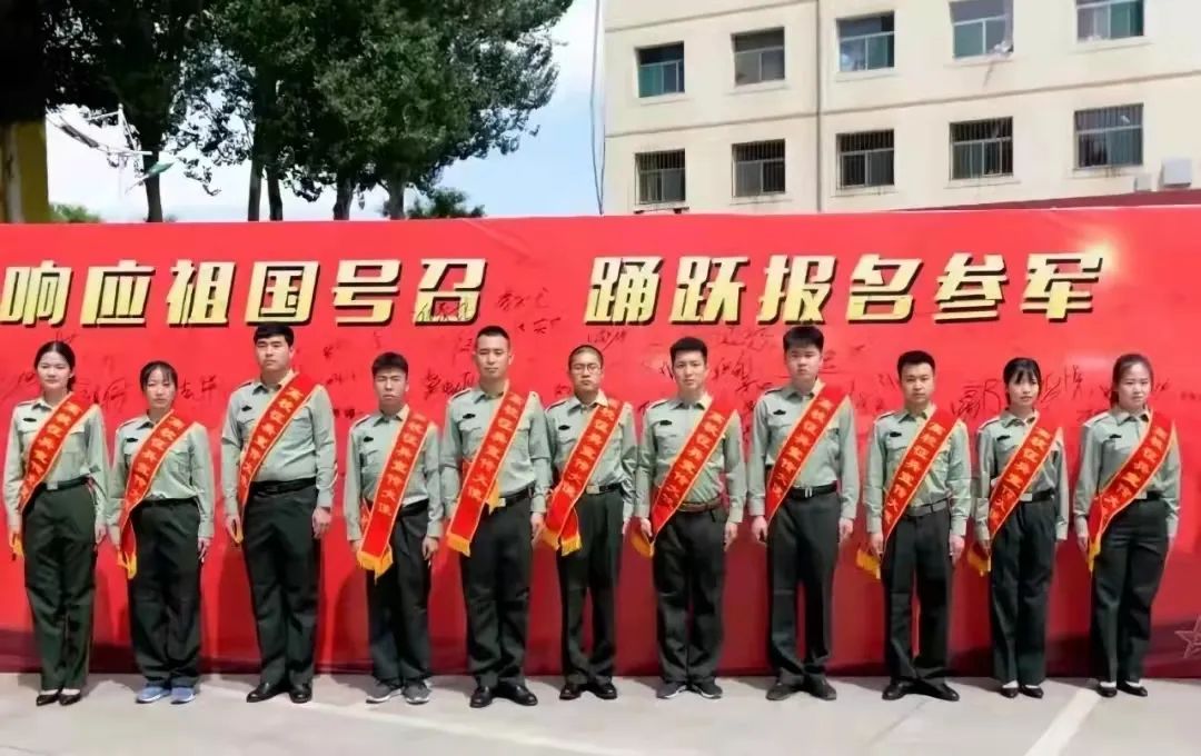 ▲刘赟(右三)担任高校征兵宣传大使根据