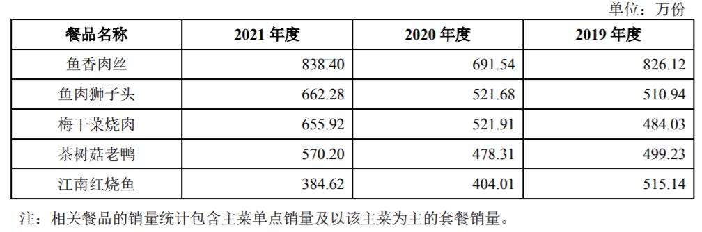 招股书显示,2021年,该公司一共销售838.40万份(含套餐销量)鱼香肉丝,是老娘舅当年销量最佳的菜品。