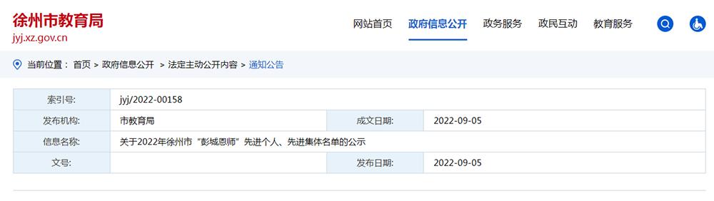 关于2022年徐州市“彭城恩师”先进个人、先进集体名单的公示