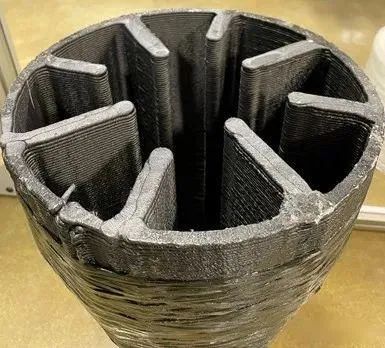 利用Magnum Venus Products公司的设备,ORNL 的研究人员们探索将纤维缠绕(提供抗压强度)整合到3D打印(获得复杂的形状)的部件上与美国Orbital Composites公司合作,ORNL还在寻求优化多材料的机器人3D打印技术。研究人员们正在努力使该系统(能够打印热塑性或热固性的长丝)能够在非平面表面的顶部进行更准确的打印,以及将连续纤维打印到热塑性不连续纤维部件的顶部。为此,ORNL正在开展材料原料的研究,而Orbital旨在完善机器和配套的软件。正在开发的应用包括无人机部件、模具、汽车和风力发电机部件。