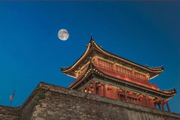 从此处赏月感受月亮与古城墙