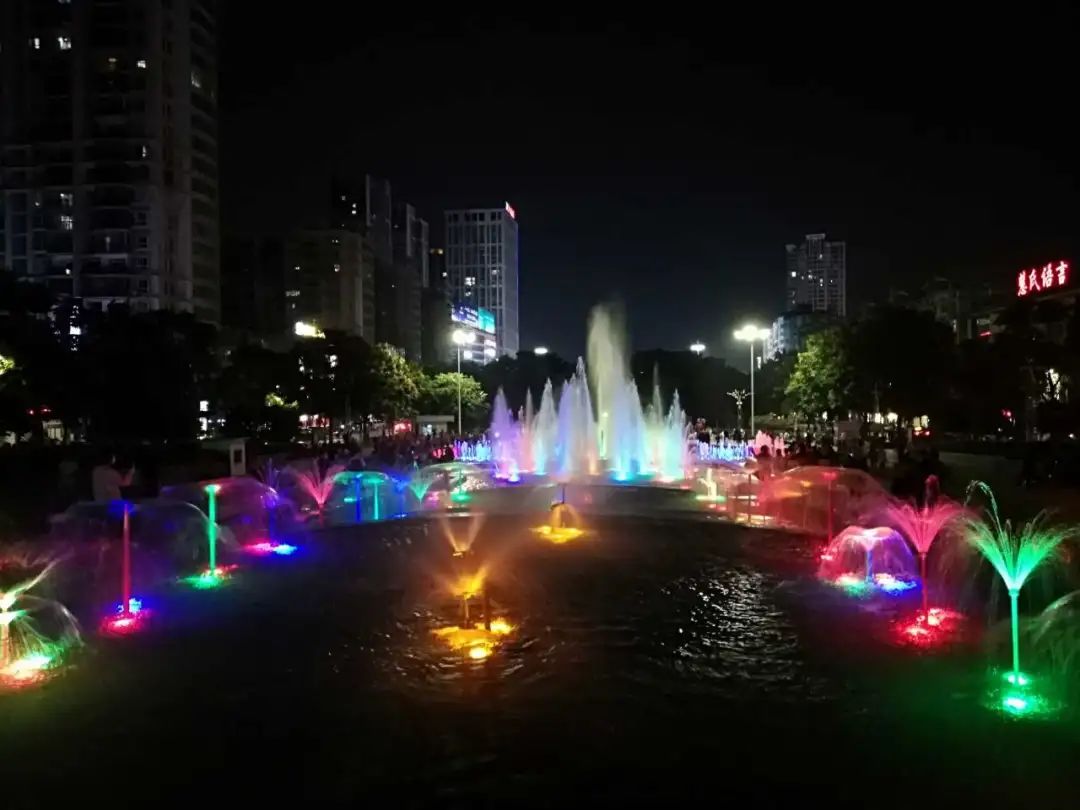 每到夜晚,还会举行光影秀表演