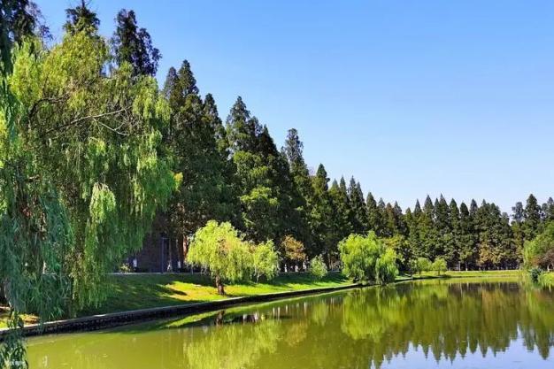 明月公园,树木成林花木繁荣,环境优美