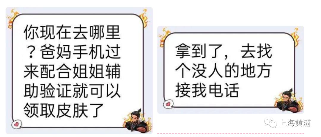 骗子会伪装成“邻家哥哥,知心姐姐”在网络上主动搭讪未成年人,投其所好,以“免费赠送游戏皮肤”为诱饵,引诱同学入局。目标指向家长图