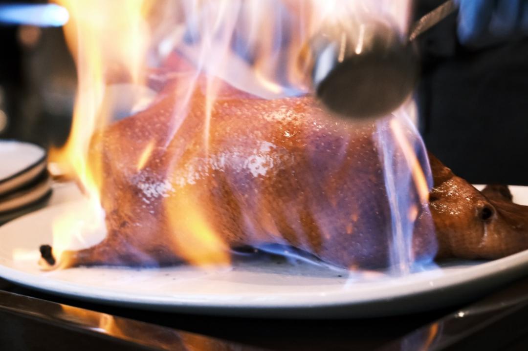 所以烤鸭这种高性价比还有桌边服务的你一定不能放弃,点个火,至少你朋友圈集个百赞有希望的。至于为了格局,你可以自带茅台给他燃。