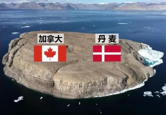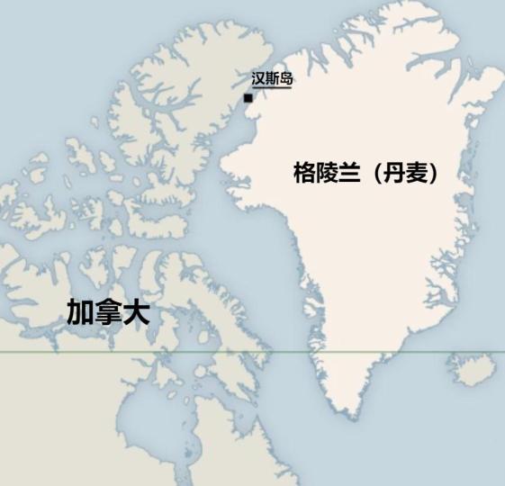 ▲加拿大和丹麦之间的岛屿汉斯岛(黑色)历史上,加拿大和丹麦为了该岛屿的主权,争夺了近50年。1984年到2022年,两国军队用各自国旗以及特产酒类瓶子在此宣誓主权,史称“威士忌战争”。