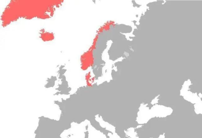 ▲历史上的丹麦帝国格陵兰岛纬度高,气温低,终年严寒。从10世纪维京人发现格陵兰到15世纪时期,维京人仅仅在格陵兰岛建立了定居点。