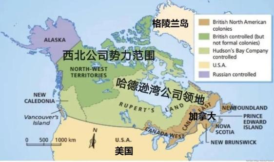 加拿大的面积从100万平方公里增加至900多万平方公里(纽芬兰1949年加入加拿大),从大西洋国家变成了地跨三大洋的国家。