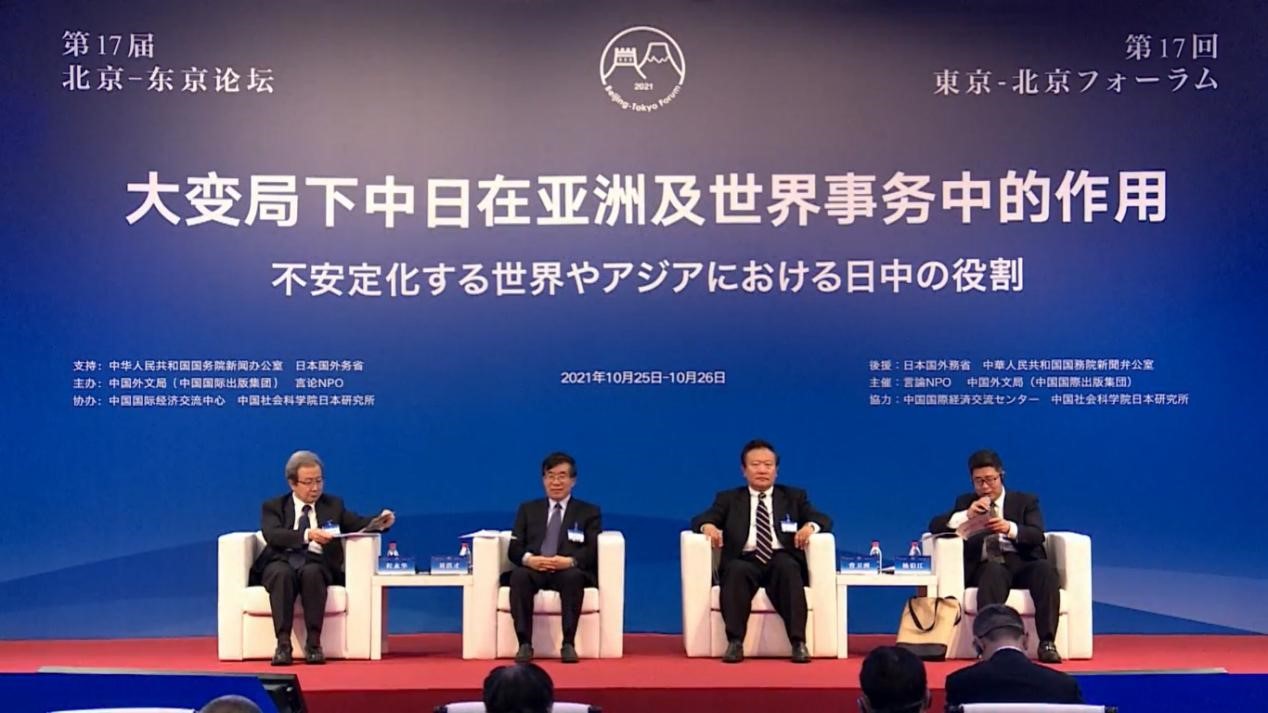 2021年10月25日,杨伯江(右一)在以“大变局下的中日关系及重塑国际合作——迈向邦交正常化50周年的思考”为主题的第17届北京—东京论坛上发言。 北京日报 图