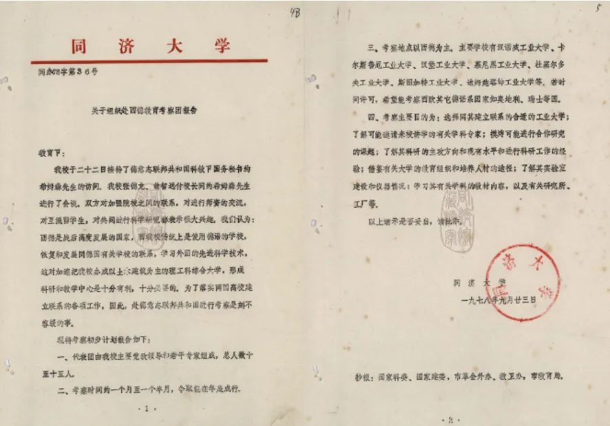 可以说,这个请示是主动的、快速的,也是极富智慧、眼光和胆识的,它凝聚了中国人对现代化的渴望和几代同济人的梦想,借助国家领导人高瞻远瞩送出的重要信息,从而打开向以德国为代表的欧洲现代化强国学习的大门,把同济与整个世界从学术上联系起来。