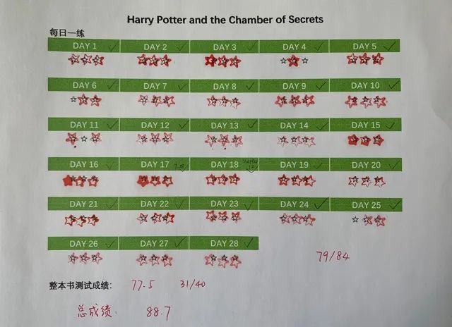 感觉娃的听力水平已经超过我,只是阅读词汇量还比我差一截。 三年前读过罗尔德达尔的中文书,也不知道还记得多少,估计听英文的时候还能想起来不少吧?就当磨耳朵温听力了。暑假带娃读了《哈利波特与密室》,我让他看着书听,但实际他经常看着看着就找不到在哪行了,但是还在听着,如果我打断他,问他读到哪了,他有时候要停下来找找才能找到,所以说明他确实在听,只是眼神游离了... 每次问他听懂了吗,他都说听懂了,最后测试结果还不错。